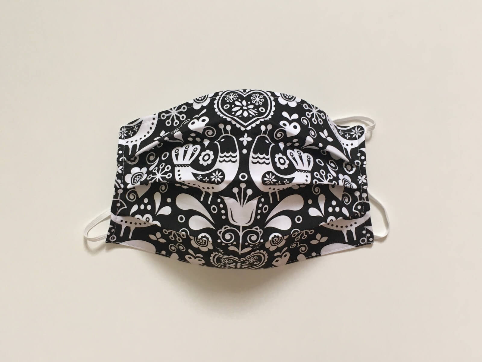 Čierne rúško s bielymi ľudovými vtáčikmi